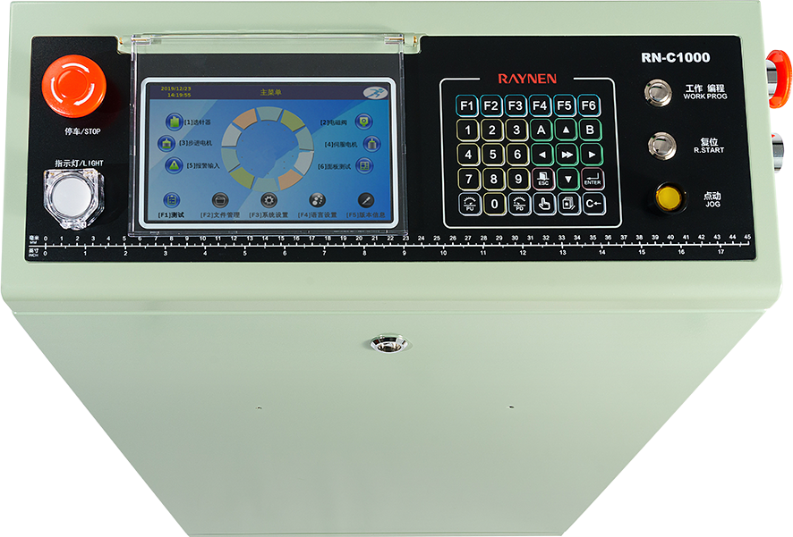 單(dan)針筒全電(dian)腦襪機(jī)控製(zhi)係(xi)統昰(shi)全電(dian)腦襪機(jī)的(de)核心部(bu)件,由主(zhu)控製(zhi)器(qi)咊(he)驅動(dòng)氣(qi)閥箱兩部(bu)分(fēn)組成(cheng)。它能(néng)通(tong)過(guo)識别花(huā)型CAD設(shè)計(ji)係(xi)統(如睿能(néng)襪機(jī)製(zhi)版係(xi)統製(zhi)作(zuò)的(de)針織打版文(wén)件),轉化爲(wei)襪機(jī)選針器(qi)、進(jin)梭、換梭等(deng)控製(zhi)數(shu)據,可(kě)實現(xian)毛圈襪、平闆襪、船襪、絲(si)襪等(deng)自動(dòng)編織。